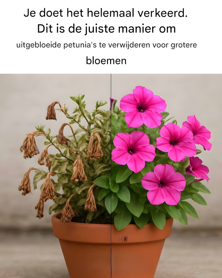 Je doet het helemaal verkeerd. Dit is de juiste manier om uitgebloeide petunia’s te verwijderen voor grotere bloemen.