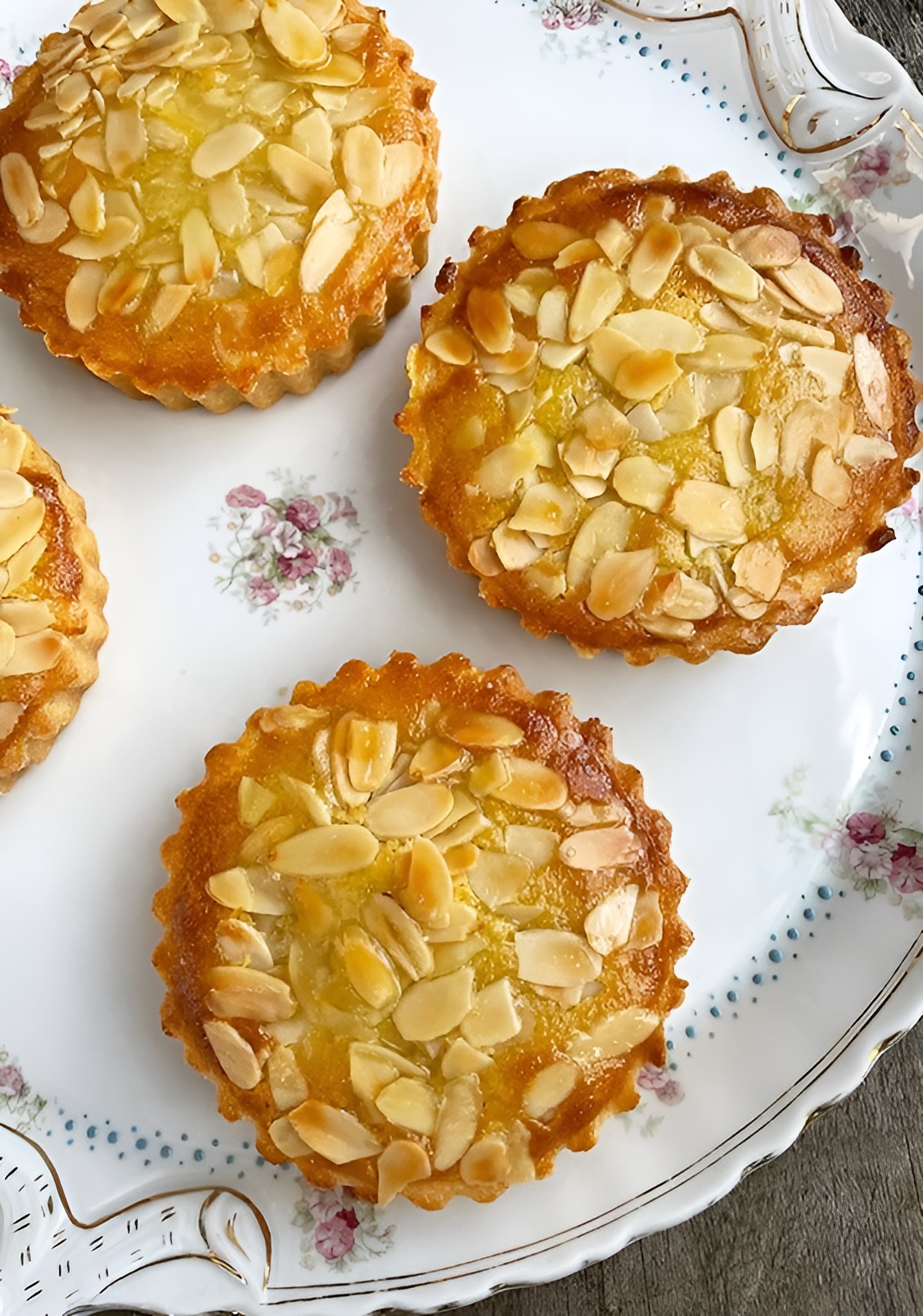 Ingrediënten: Voor de taartbodem: 250 g bloem Snufje zout 100 g poedersuiker 1 zakje vanillesuiker 125 g zachte boter 1 eidooier 3-4 eetlepels water Voor de amandelroom: 160 g zachte boter 150 g suiker 1 tl amandelextract 3 eieren 60 ml slagroom 150 g amandelmeel 4 eetlepels bloem Bereidingswijze: