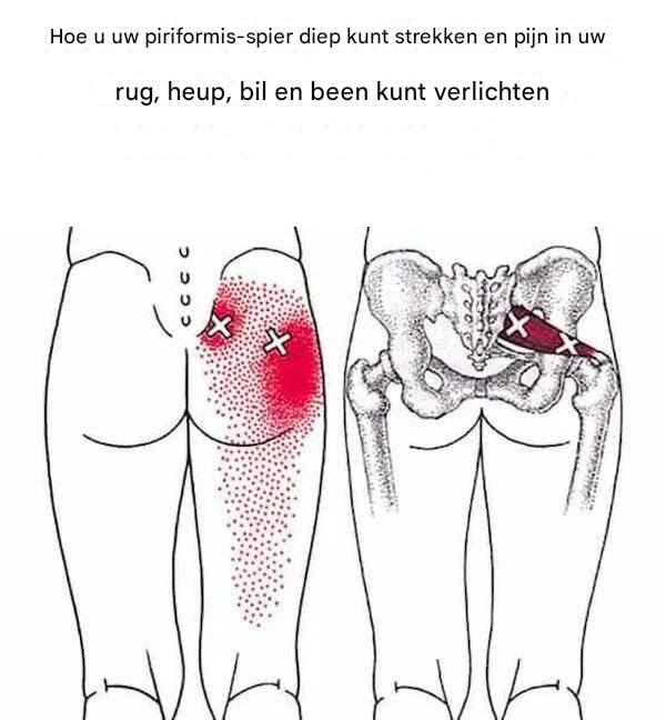 Dieser kleine, dünne Muskel sitztter hinter dem Gluteus maximus und verbindet die Wirbelsäule mit dem oberen Teil van de Oberschenkelknochens. Wenn sich der Piriformis-Muskel zisammenzieht, gezerrt wird, sich entzündet oder Krämpfe hoed, kann eine effektive Dehnung van de Piriformis-Muskels die Muskelfunktion wiederstellenher und Schmerzen lindern.