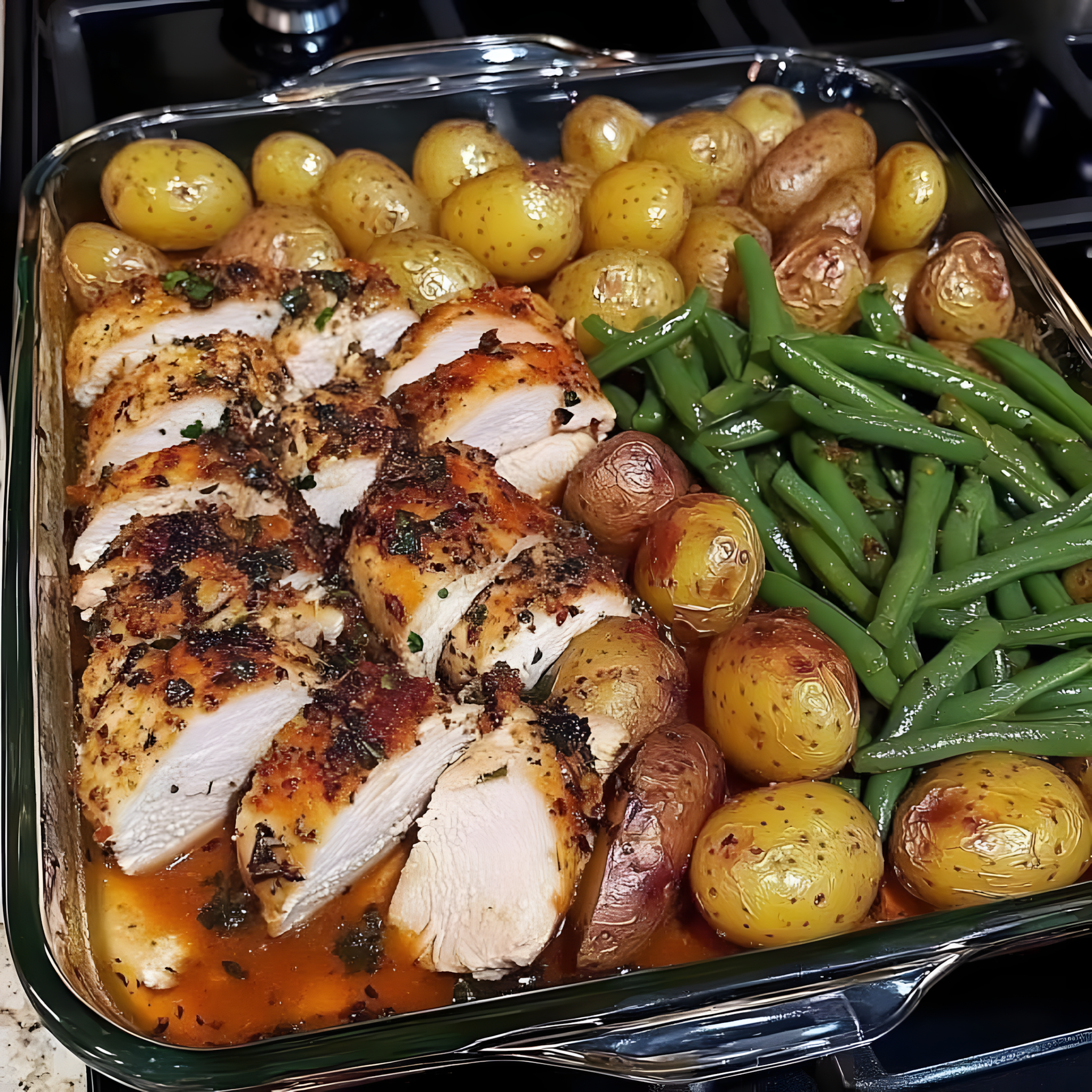 Deze eenpans topper is een redder in nood op drukke doordeweekse avonden! Het zit boordevol smaak dankzij de knoflook, kruiden en citroen, en het is zo makkelijk op te ruimen. De kip is mals en sappig, en de aardappelen en sperziebonen worden er perfect naast gekookt. Een complete, gezonde en heerlijke maaltijd, allemaal in één pan! ✨