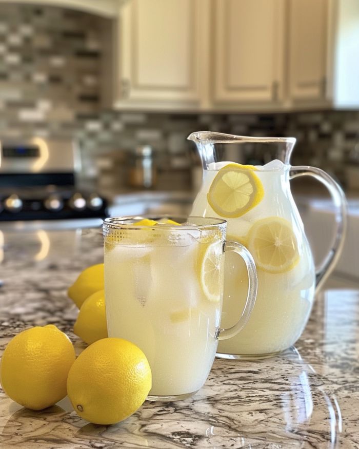 Slagroomlimonade is een heerlijke traktatie die zijn oorsprong vindt in de verfrissende kraampjes langs de weg die zo populair zijn in het Midwesten tijdens de zinderende zomermaanden. Met slechts een handvol ingrediënten maak je een romige, pittige drank die de eenvoud en vreugde van die goede oude tijd oproept. Dit recept is perfect voor je volgende familiebijeenkomst of gewoon als snelle opkikker op een warme dag.