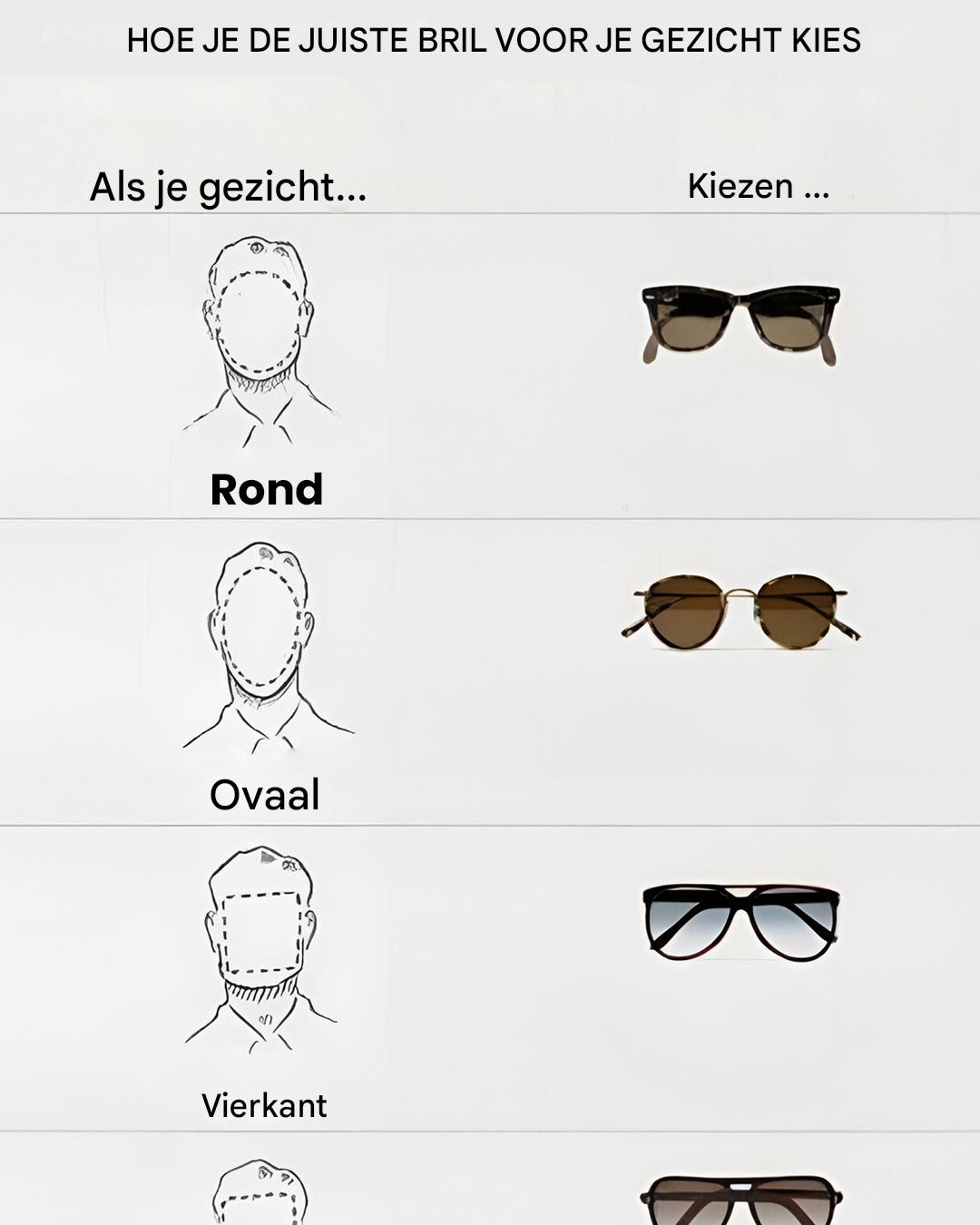 Kies voor: Hoekige of rechthoekige glazen die structuur bieden. Ook vierkante of vlindervormen zijn ideaal.