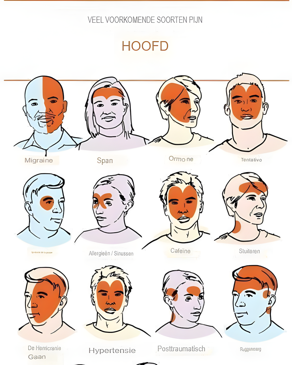 Kenmerken: Doffe, drukkende pijn aan beide kanten van het hoofd.