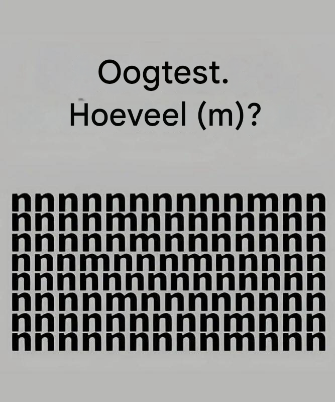 Het internet zit vol met visuele puzzels en mindsporttaken, en een van de nieuwste uitdagingen waar iedereen op moet letten is de “visietest”, waarbij deelnemers aandacht moeten besteden aan hoe vaak de letter “m” in een raster met “n” verschijnt.