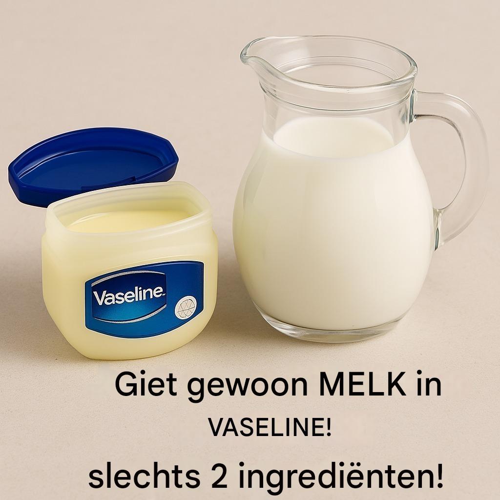 Vaseline (vaseline) daarentegen houdt vocht vast en zorgt voor langdurige hydratatie. Het vormt een barrière die je huid beschermt tegen uitdroging en kloven. Vaseline helpt ook bij het herstellen van een beschadigde of geïrriteerde huid. In combinatie met melk creëren deze twee ingrediënten een hydraterende en helende crème die wonderen doet voor je gezicht, handen, voeten en zelfs lippen.